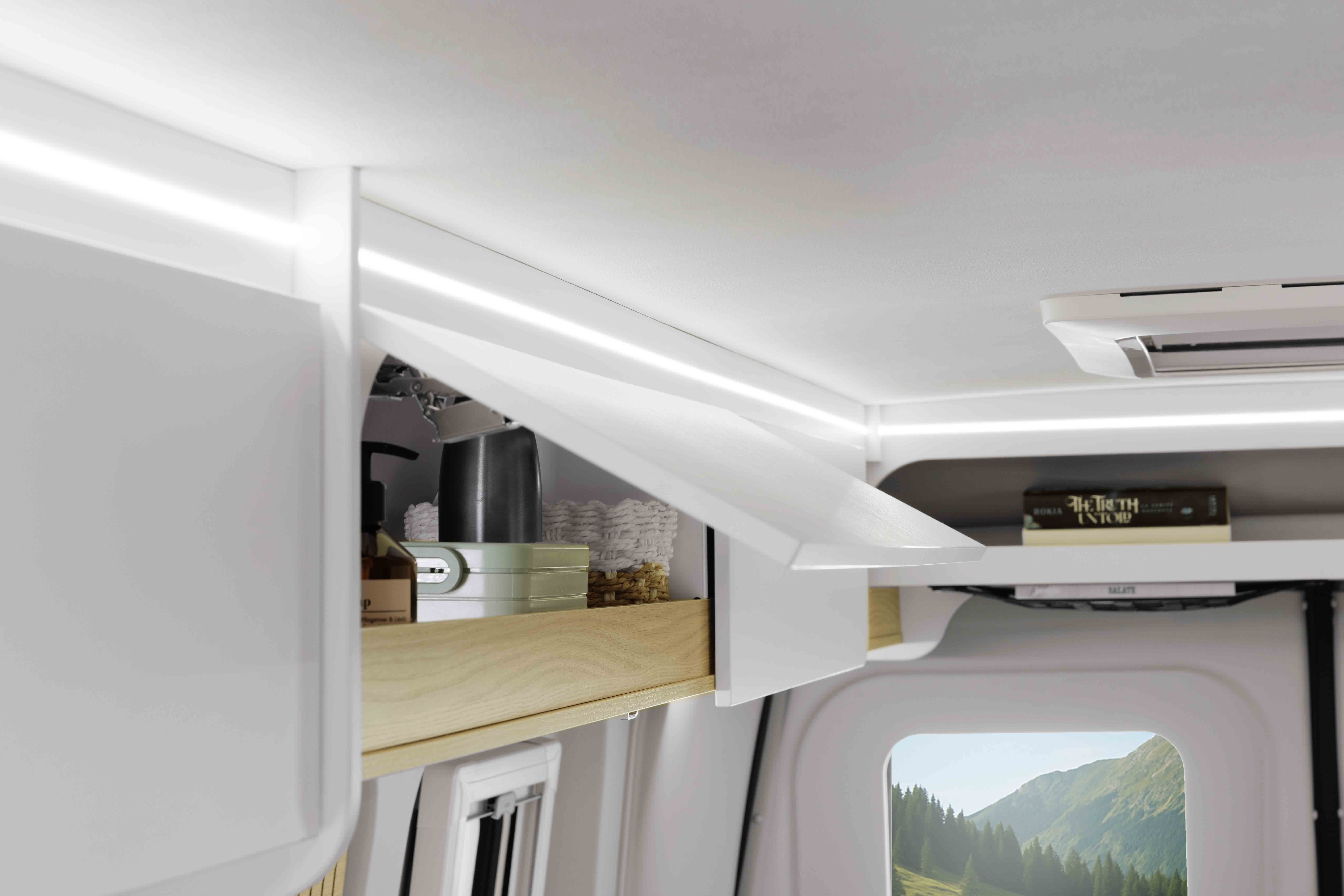 Interiér obytných vozů Ahorn VAN je zpracován s maximální péčí a důrazem na detail. Nábytek je vyroben z lehkých, ale odolných materiálů, které zaručují dlouhou životnost a pohodlí. Každý prvek interiéru je navržen tak, aby byl praktický, funkční a esteticky příjemný.