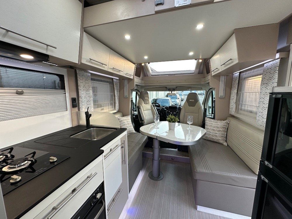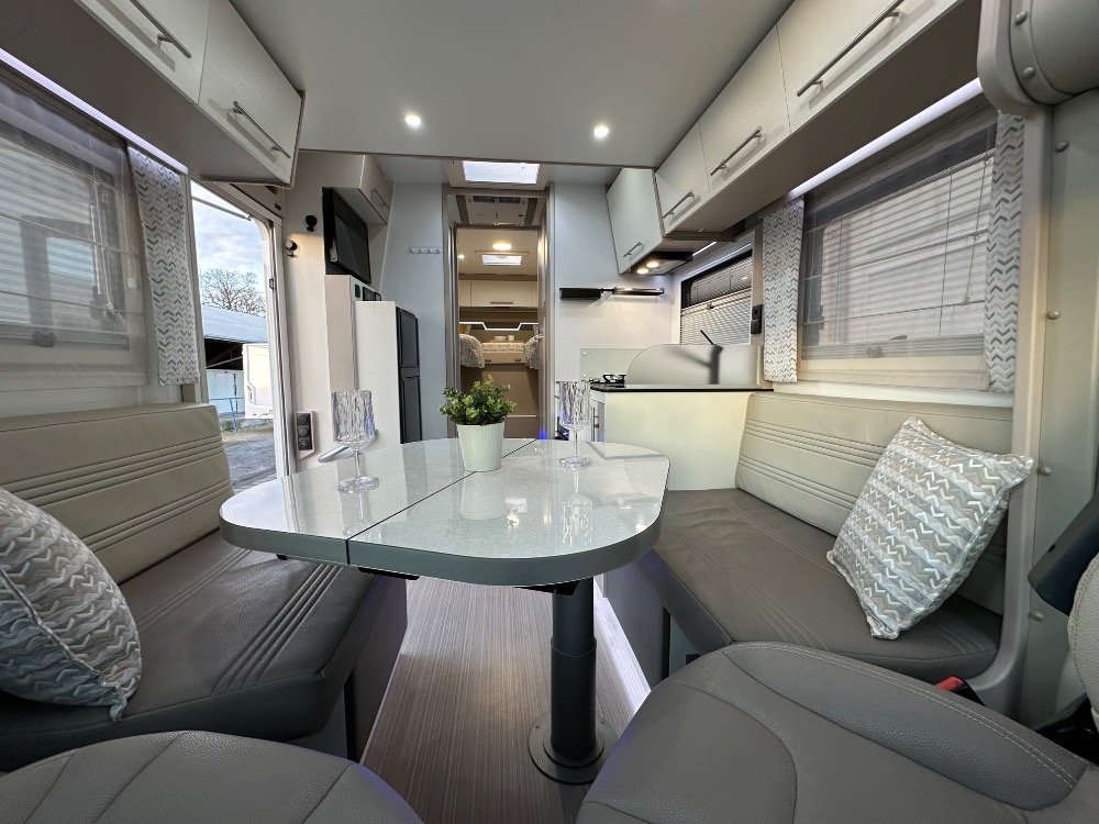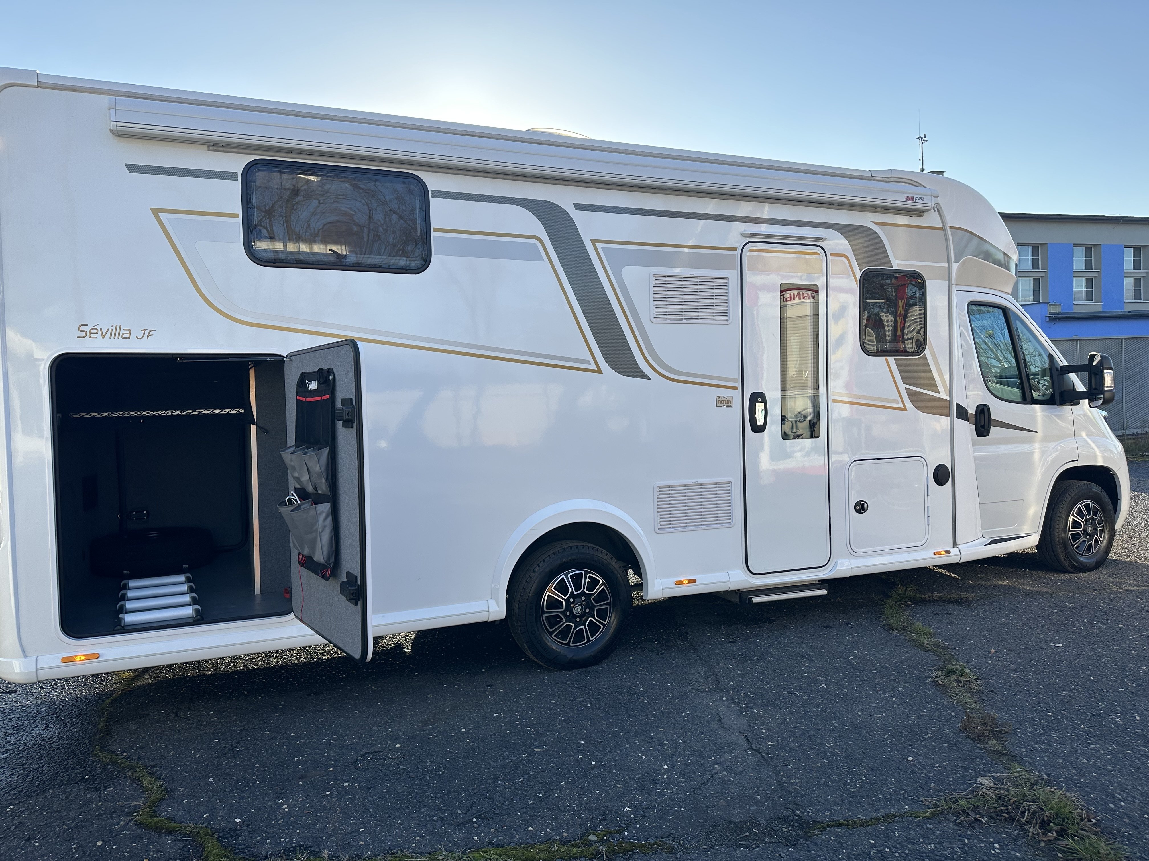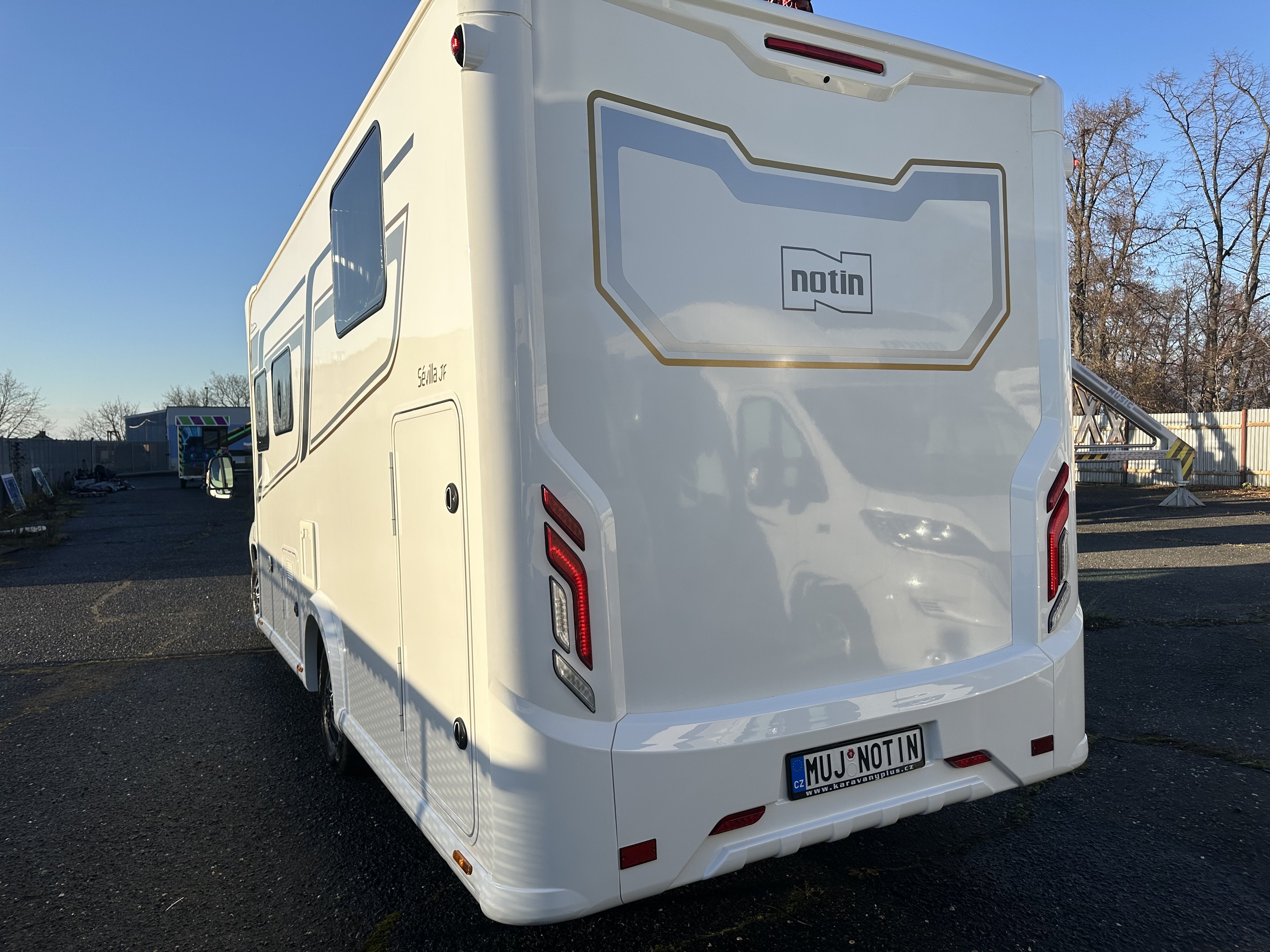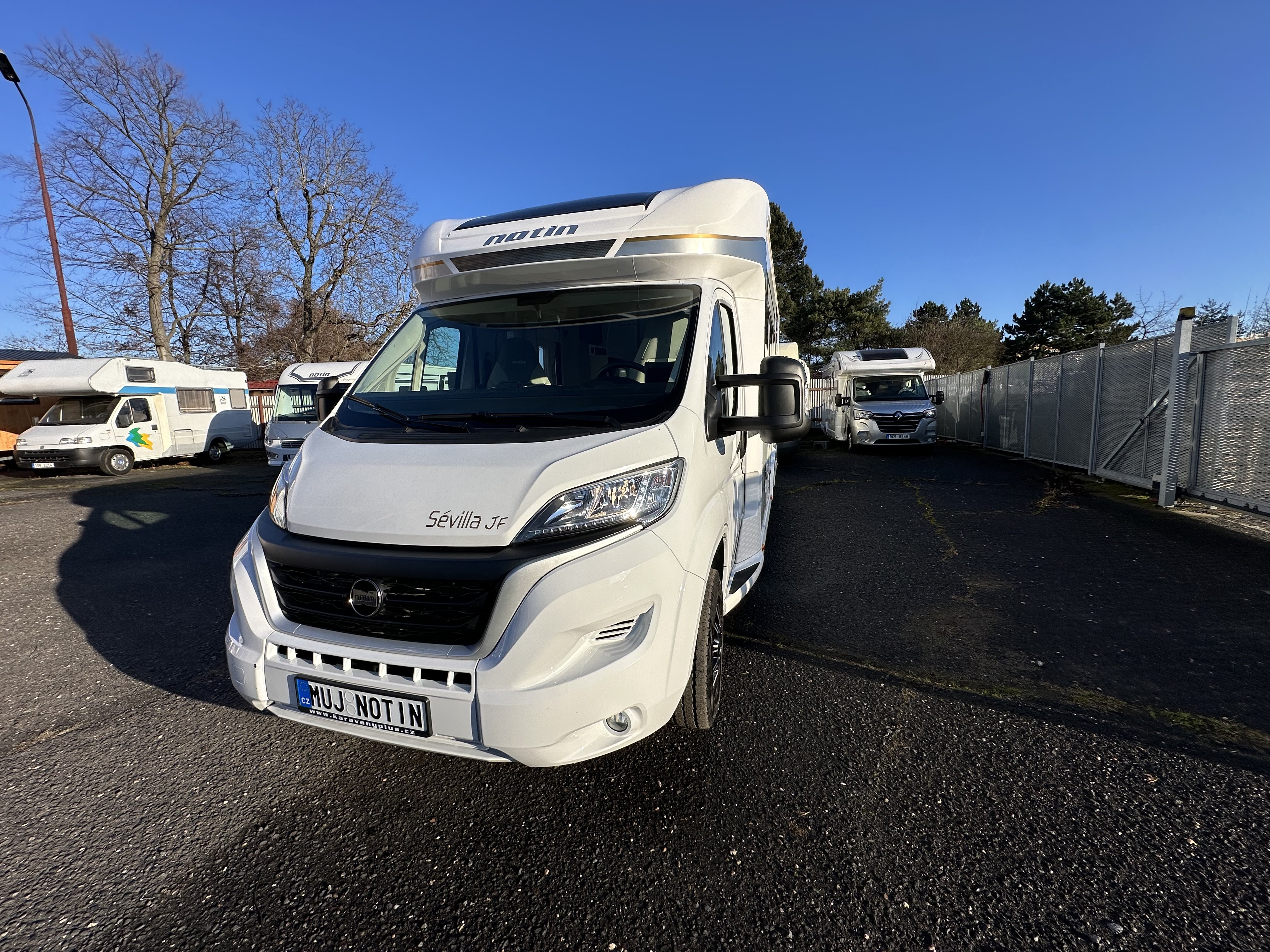 Obytný vůz NOTIN Sevilla JF z řady polo-integrovaných automobilů Progress se řadí mezi luxusní vůz ve své třídě jak zpracováním tak vybavením.