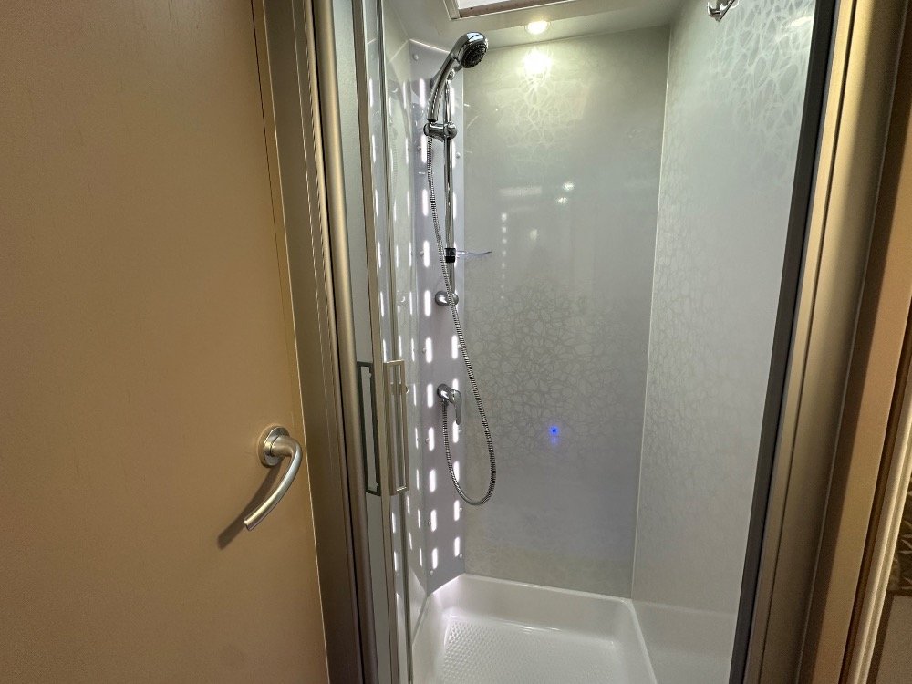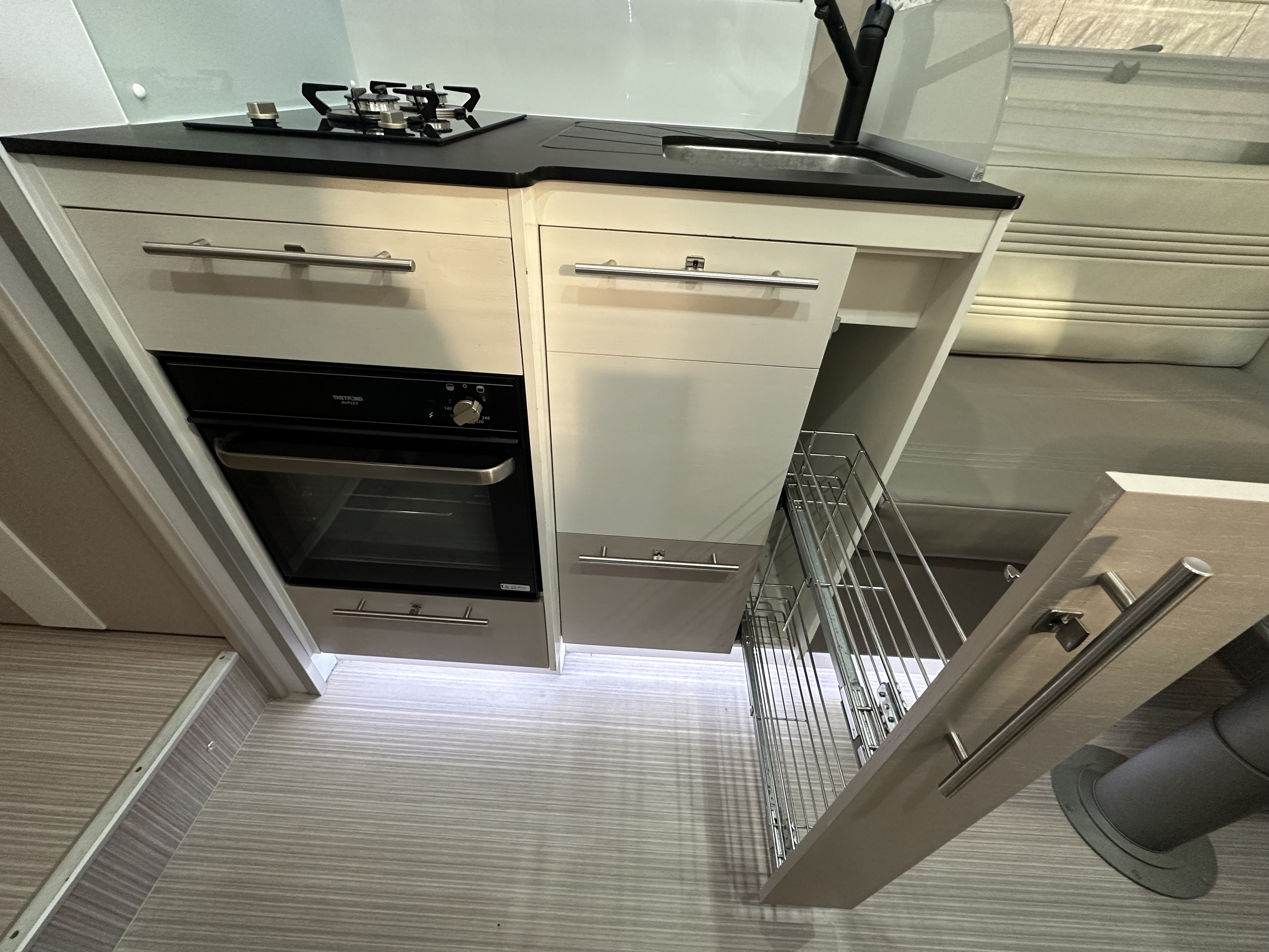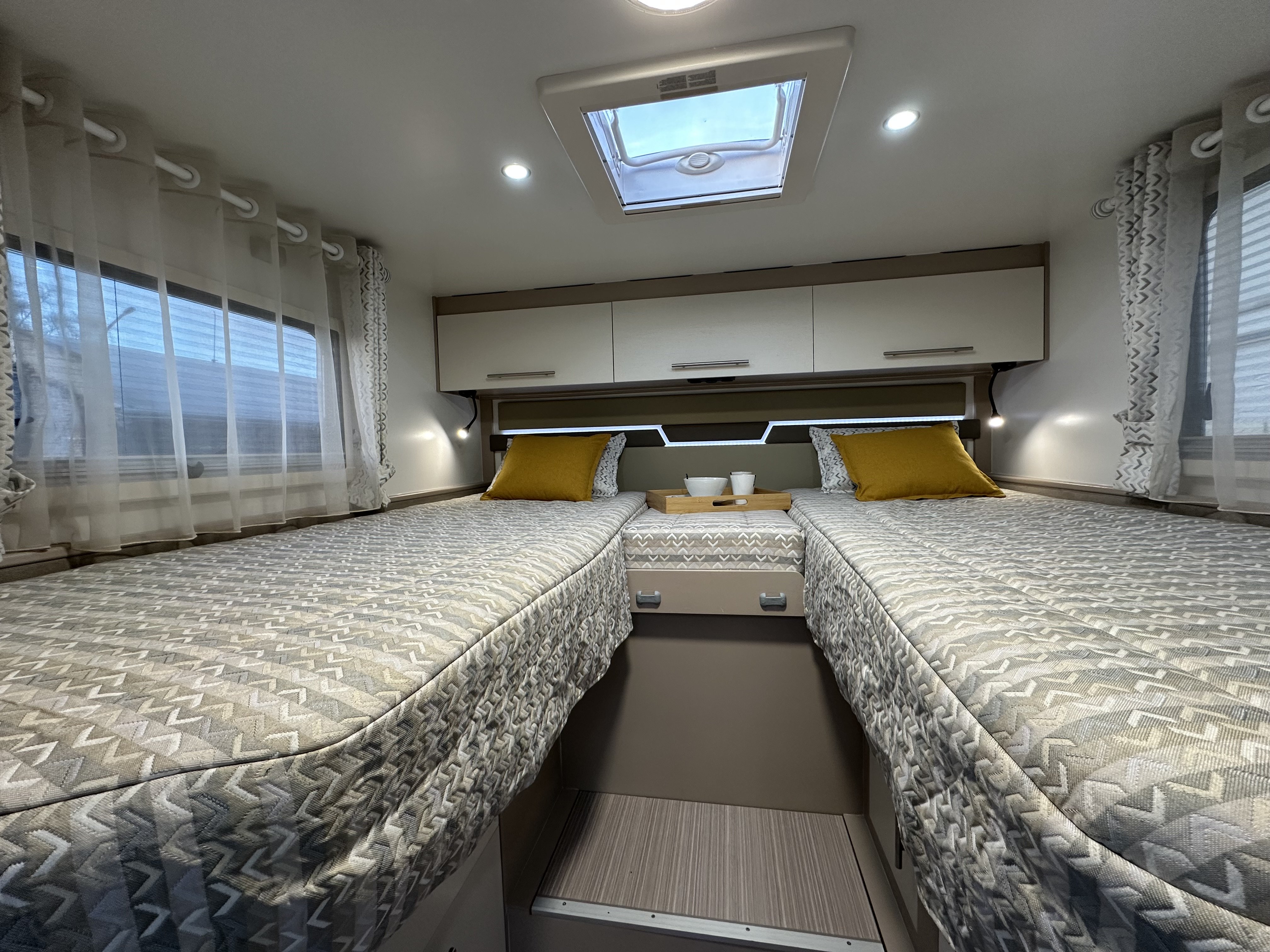 Veškerá konstrukce nábytku je ručně vyráběna přímo ve fabrice NOTIN, kde je kladen důraz na francouzskou eleganci a detail. Moderně vybavená koupelna s odděleným XXL sprchovým koutem. Pohodlná ložnice se zašupovacími dveřmi a oddělenými lůžky, které lze sjednotit na jedno velké zaručí dostatek soukromí.