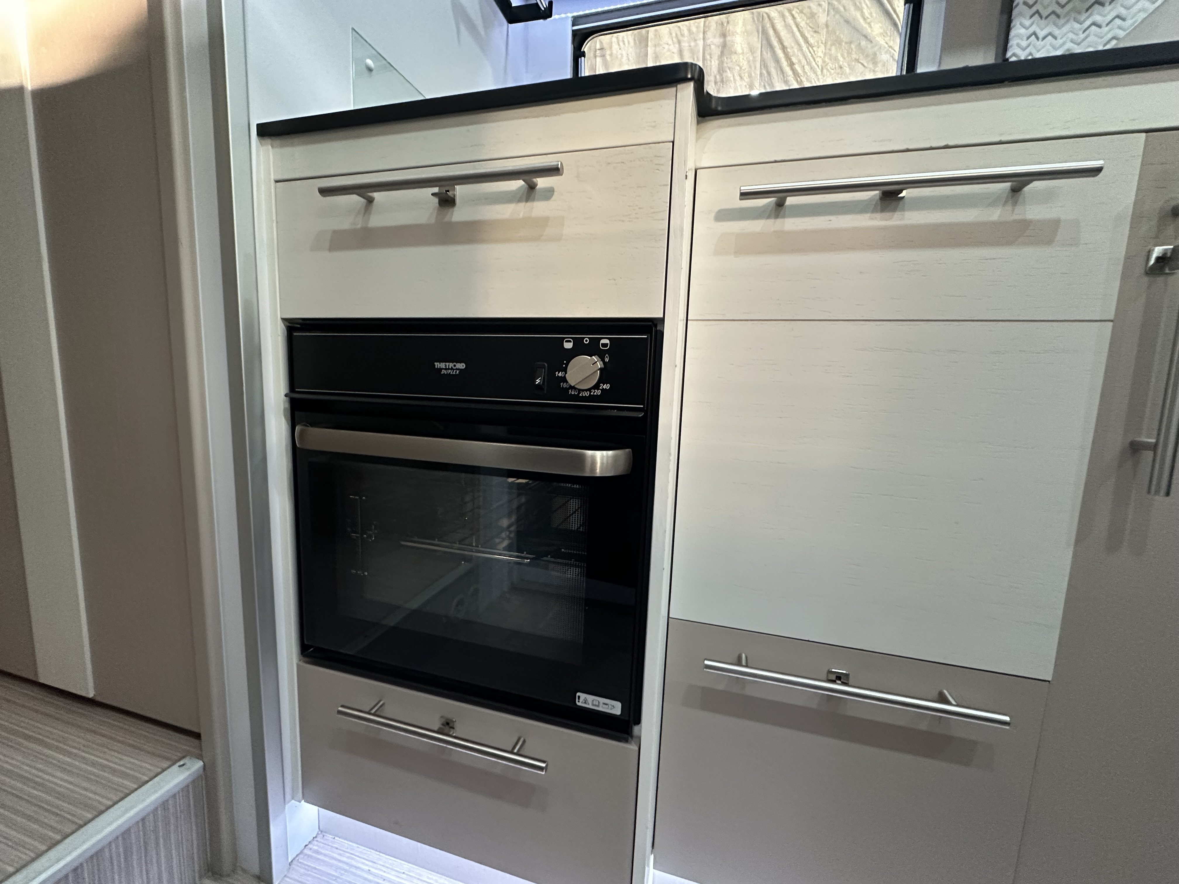 Kuchyň je vybavena ledničkou Dometic 153 l, sporákem Thetford.