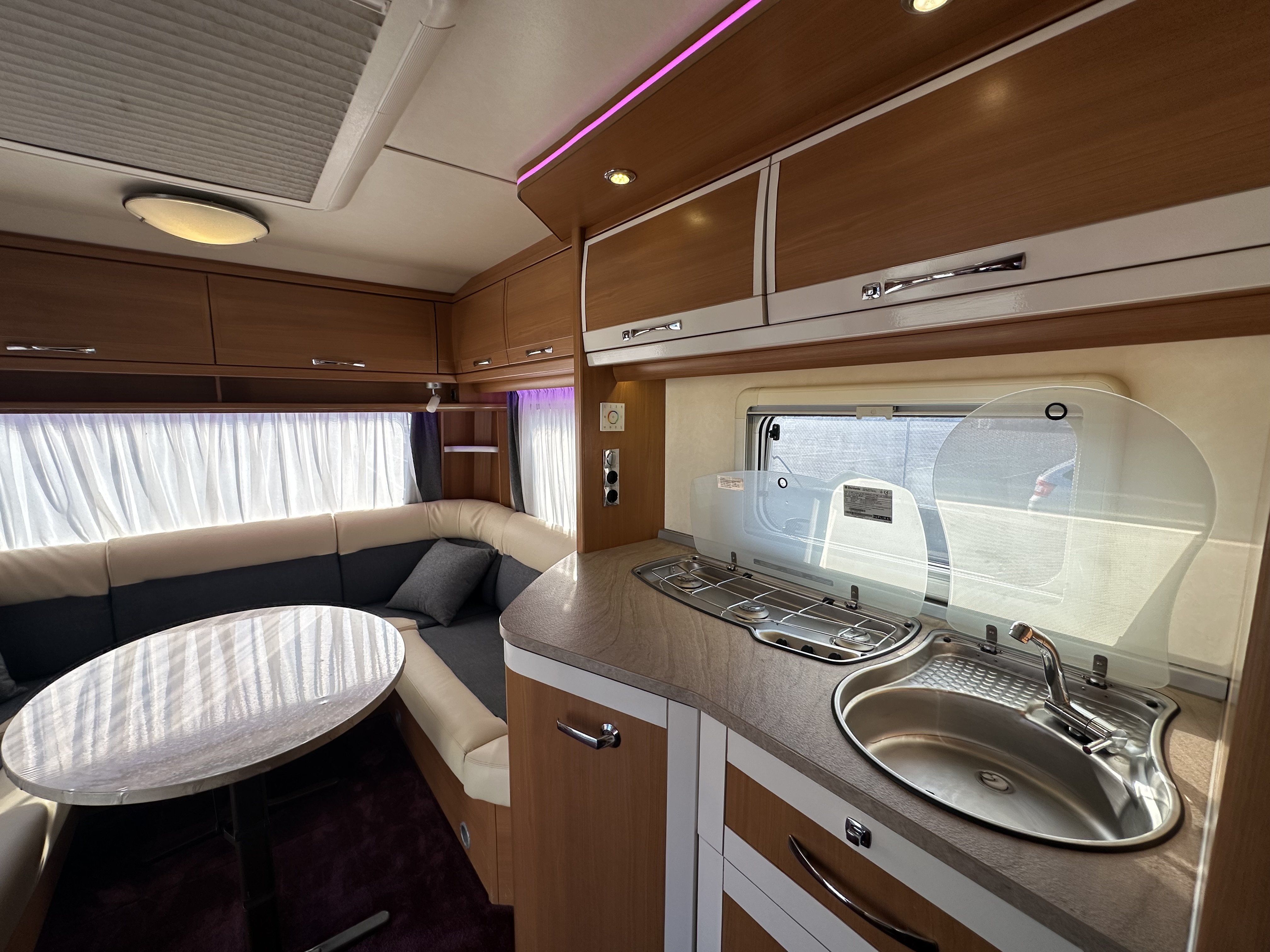 Prostorný a elegantní karavan Tabbert Vivaldi 560 nabízí ideální kombinaci pohodlí, kvality a stylu pro vaše cestování. Díky promyšlenému uspořádání poskytuje pohodlné spaní až pro 4 osoby. Uvnitř najdete velké sezení, které lze snadno přeměnit na lůžko, praktickou kuchyňku s úložným prostorem a koupelnu s toaletou.